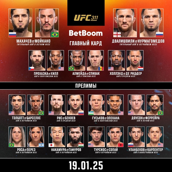 Основной кард также включает два боя в среднем весе: Атеба Готье против Роберта Валентина и Пауло Коста против Романа Копылова. Примечательно, что Коста, имеющий четыре поражения в последних пяти боях, и Копылов изначально должны были встретиться на UFC 317, но их поединок был перенесен по пока нераскрытым причинам.