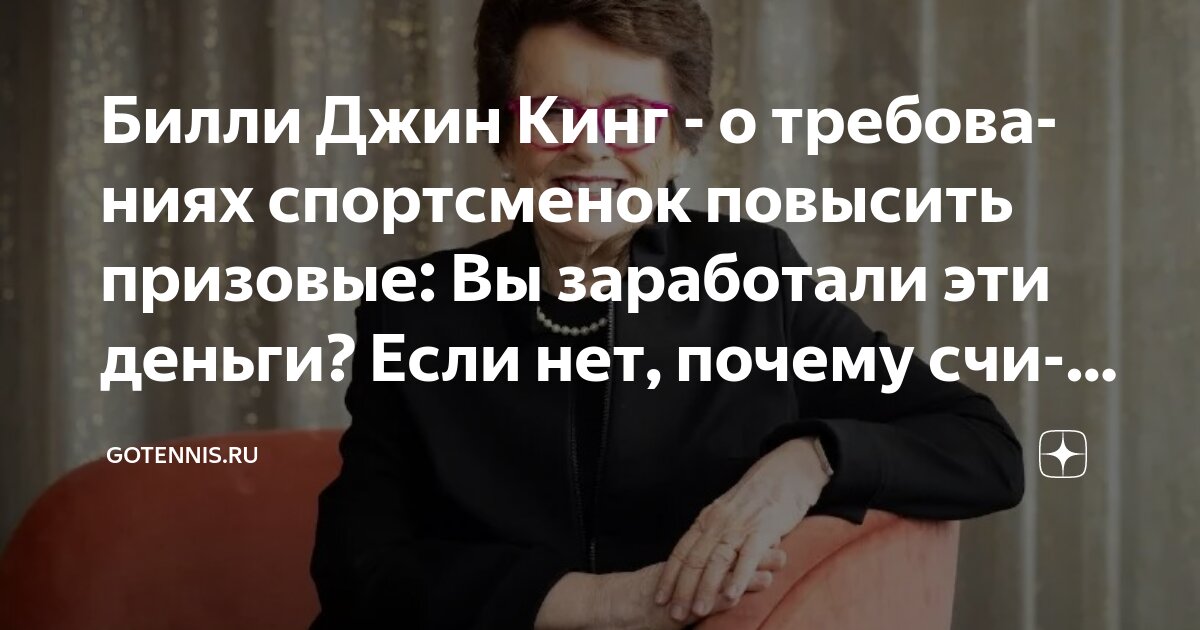 Легендарная американская теннисистка, обладательница 12 титулов «Большого шлема» в одиночном разряде, Билли Джин Кинг, прокомментировала заявления спортсменок, требующих увеличения призовых фондов на турнирах.