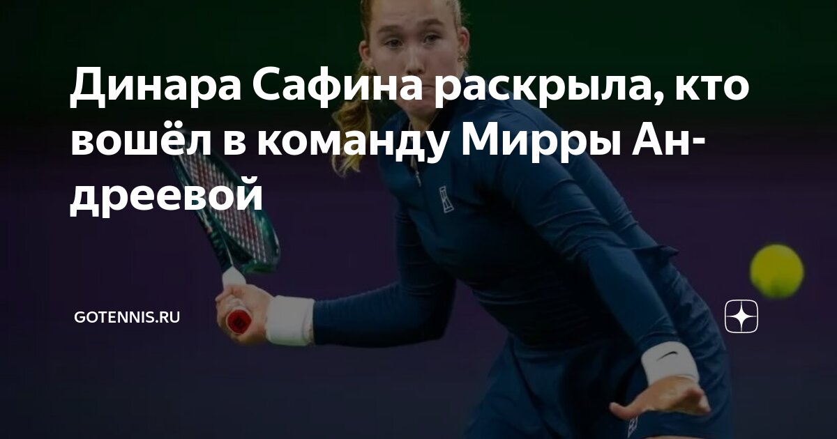 Бывшая первая ракетка мира Динара Сафина сообщила, что к команде 17-летней российской теннисистки Мирры Андреевой, занимающей седьмую строчку мирового рейтинга, присоединился тренер по физической подготовке Азуз Симсич.