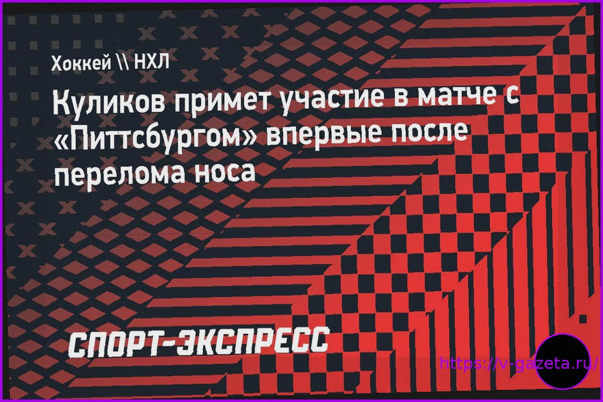 Главный тренер хоккейного клуба «Флорида» Пол Морис подтвердил, что российский защитник Дмитрий Куликов сыграет в предстоящем матче регулярного чемпионата НХЛ против «Питтсбурга». Это будет его первое появление на льду после перелома носа.