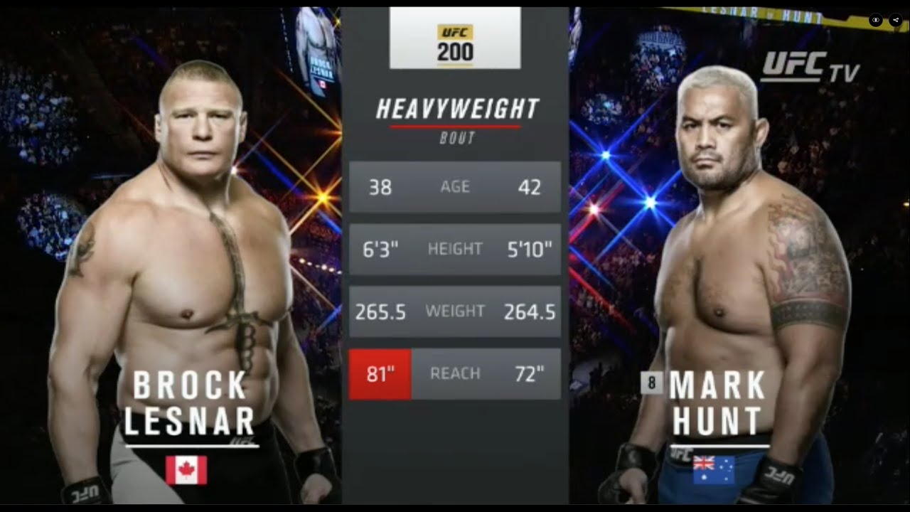 Изначально Хант проиграл этот бой единогласным решением судей, но позже результат был аннулирован (признан «без результата»), когда у Леснара был обнаружен положительный тест на кломифен — вещество, запрещенное для спортсменов UFC в любое время.