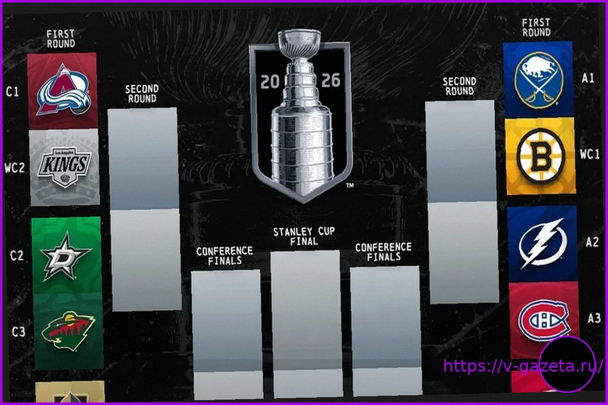 Национальная Хоккейная Лига (НХЛ) объявила даты проведения розыгрыша Кубка Стэнли в 2026 году. Турнир начнется 19 апреля и завершится 21 июня. В рамках первого раунда плей-офф определены следующие пары команд: