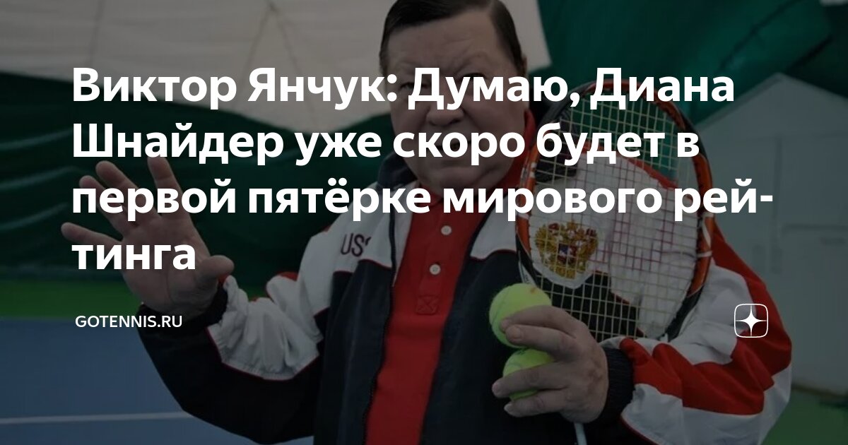 Заслуженный тренер России Виктор Янчук выразил мнение, что 21-летняя российская теннисистка Диана Шнайдер потенциально может в ближайшем будущем войти в первую пятерку мирового рейтинга WTA. На текущей неделе спортсменка уже показала свой лучший результат в карьере в одиночном разряде, поднявшись на 11-ю позицию.