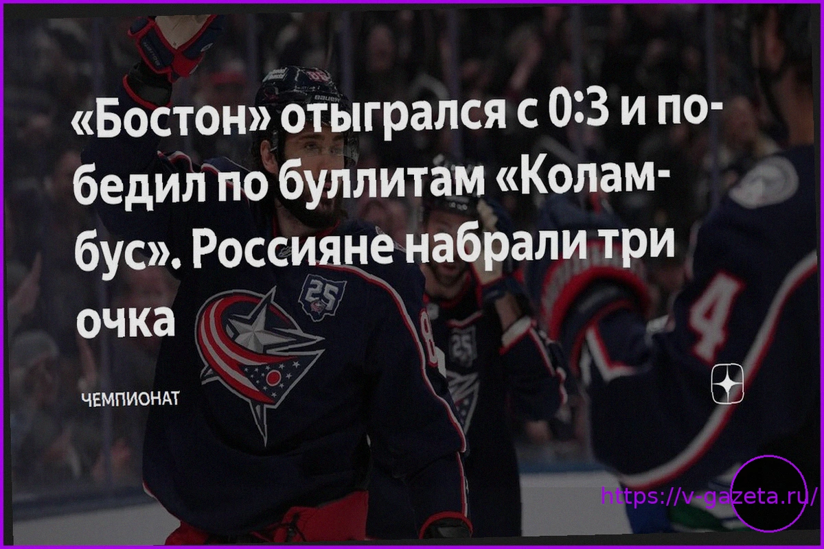 В захватывающем гостевом матче регулярного чемпионата НХЛ клуб «Бостон» одержал волевую победу над «Коламбусом» со счетом 4:3 по буллитам. «Брюинз» сумели отыграться, уступая по ходу встречи 0:3. Вклад в успех команды внесли российские хоккеисты: Кирилл Марченко отметился двумя результативными передачами, а Иван Проворов записал на свой счет одну передачу.